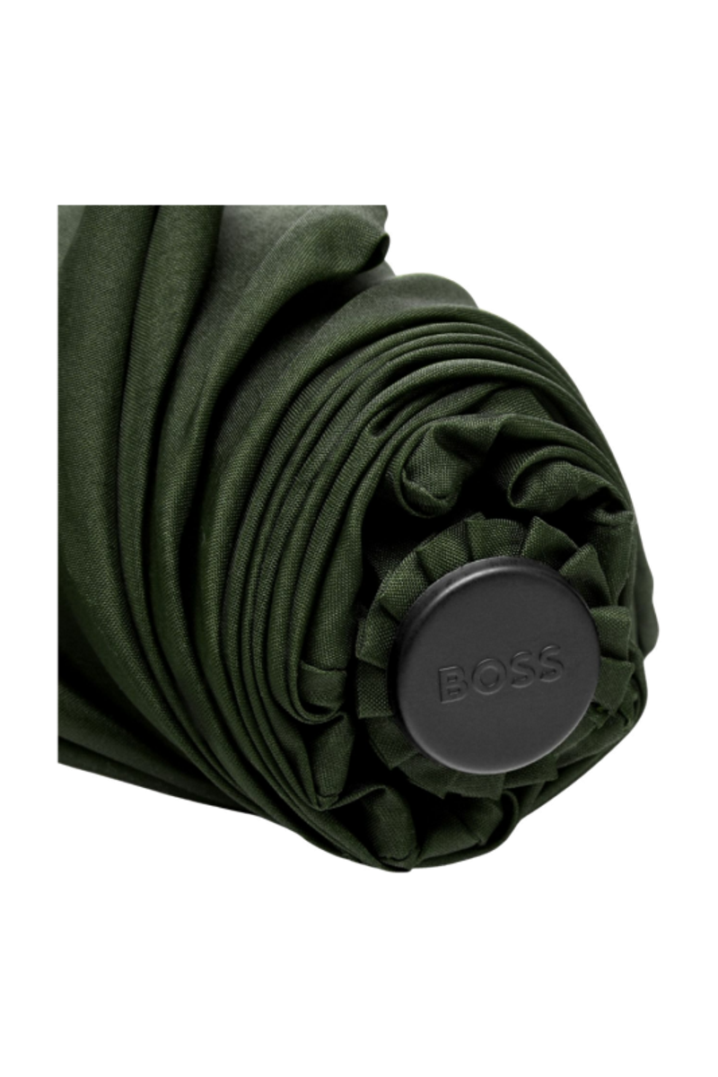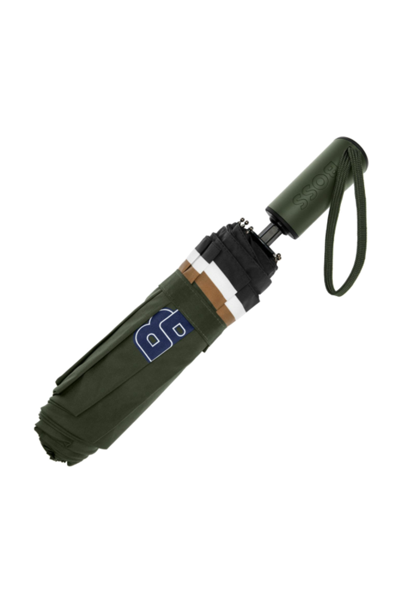 The Varsity umbrella channels a colorful, youthful energy with its bold, varsity-inspired graphical take on the Double B. The canopy is finished with the signature three-color stripe along the edge, adding a crisp nod to the brand’s codes. Offered in a compact pocket format, it comes in black, blue, forest green, and burgundy, each featuring a tonal handle luxuriously finished with the BOSS logo embossed.