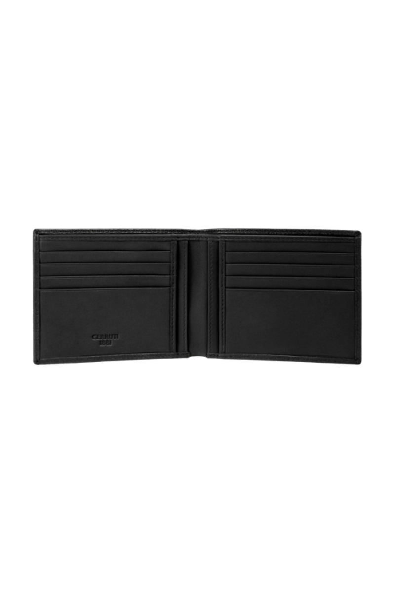 The CERRUTI 1881 Jefferson classical wallet is the ultimate everyday companion, offering a total of eight card slots, four vertical compartments, and a spacious main note compartment arranged in a timeless, intuitive layout. Crafted in carefully chosen grained, best-quality leather, it combines durability with an elevated tactile feel that enhances daily use. The miniature double R signature provides the perfect final touch—elegant, discreet, and visible only to the most discerning eyes—while its crisp chrome finish highlights the classical black version with a sharp and sophisticated contrast.