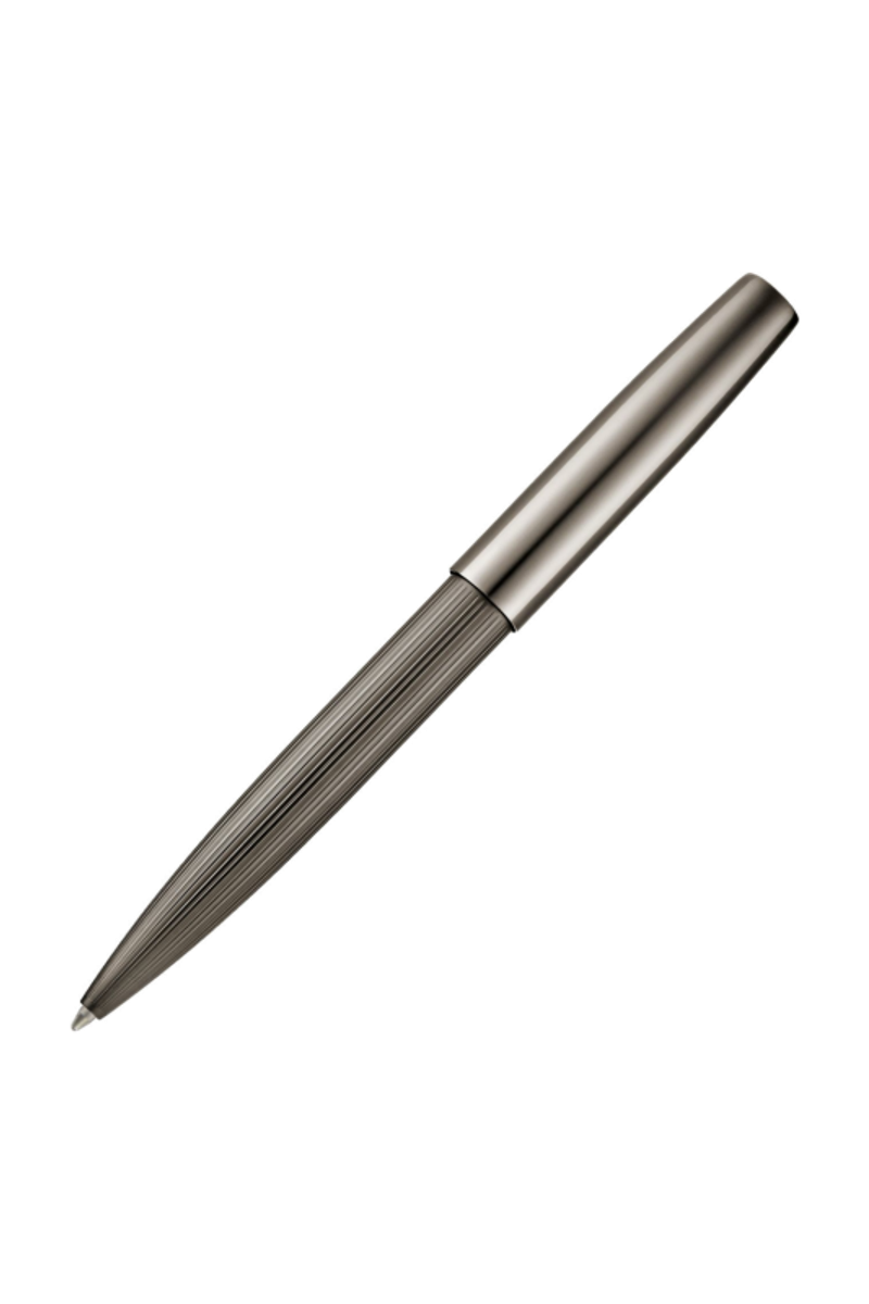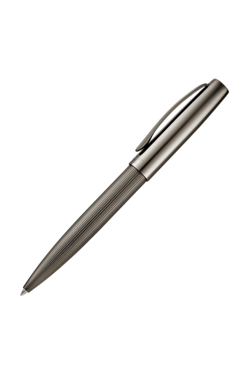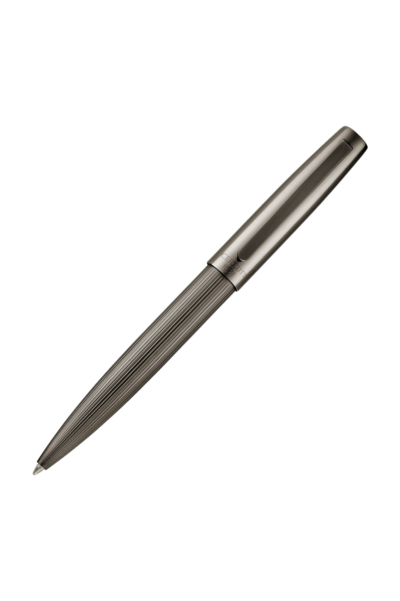 The Cerruti 1881 gunmetal ballpoint pen embodies luxurious minimalism through a smooth cap engraved with the new two-row Cerruti 1881 logo, contrasted by a pinstripe-engraved lower barrel. Its deep, elegant gunmetal finish brings depth and modern sophistication to a clean, architectural silhouette.