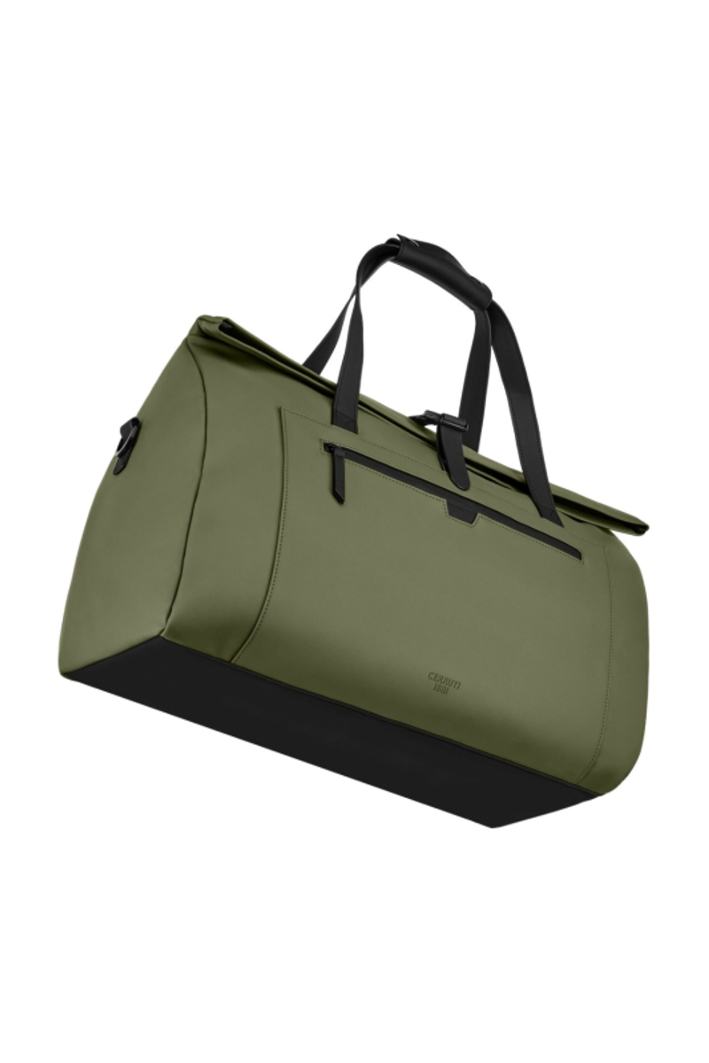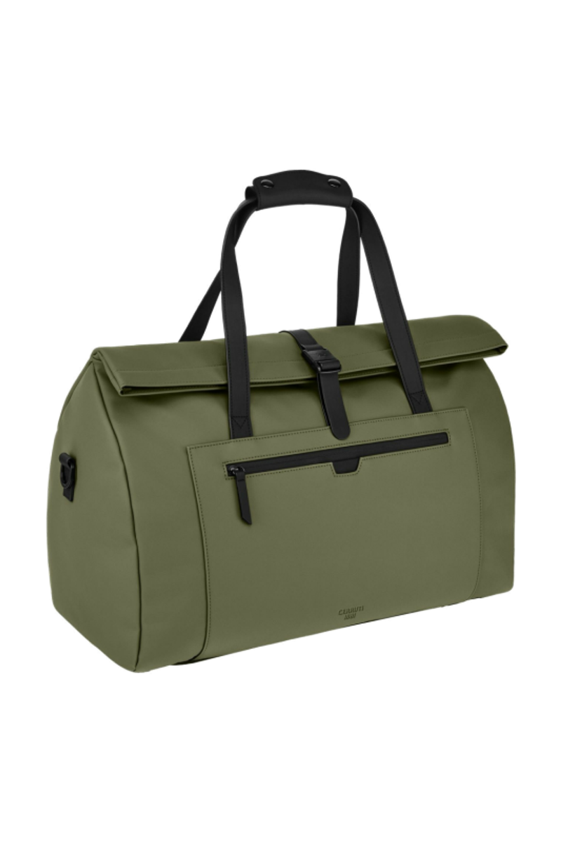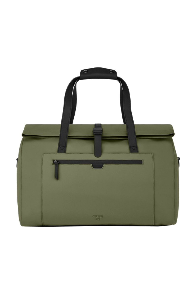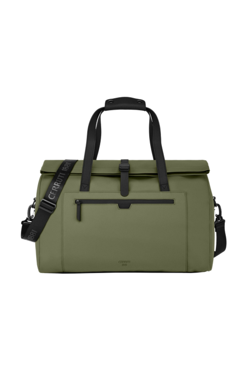 Designed with form as much as function in mind, this casual-inspired weekend bag is offered in a refined khaki green, contrasted with elegant black matte details. A subtle utilitarian aesthetic is expressed through its rolled-top closing construction, perfectly finished with an integrated magnetic closure engraved with the RR signature. The silhouette is light and roamy, created for effortless movement and everyday escape. A flat pocket to the front ensures easy access, while the detachable webbing strap allows adaptable carry. Inside, a spacious roamy interior reveals a refined monogram lining, finished with a zipped inner pocket for secure organization. It is the perfect accessory for someone with a minimalist yet casual and modern aesthetic.
