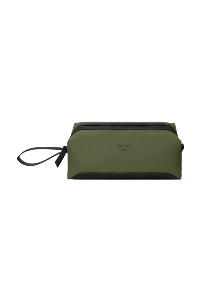 Crafted with a very modern shape that has become one of Cerruti’s signature design codes, the Easton cosmetic bag in khaki is elevated by refined black matte trims. Minimally signed with an embossed Cerruti 1881 logo, it embodies a clean and contemporary attitude. The interior is discreetly monogramed, offering a subtle nod to the house’s identity. A practical wristlet adds ease of use, making it an ideal piece for movement. The ultimate minimalistic and practical travel companion to organise all essentials.