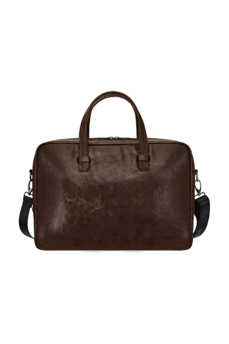 The Hudson line stands as our most fashion-forward expression, defined by beautifully textured, vintage-inspired surfaces in the deepest chocolate hue and luxuriously finished with gunmetal accents, from the Cerruti 1881 signature to the newly developed RR zippers. This document bag offers a roamy yet compact volume, thoughtfully designed for everyday professional use. A front zipped pocket, adorned with the beautiful new signature puller, provides immediate accessibility. Inside, the tone-on-tone monogrammed lining reinforces the understated sophistication of the collection, complemented by a practical zipped pocket and a dedicated laptop compartment for enhanced organisation.