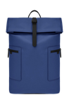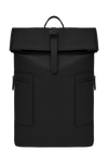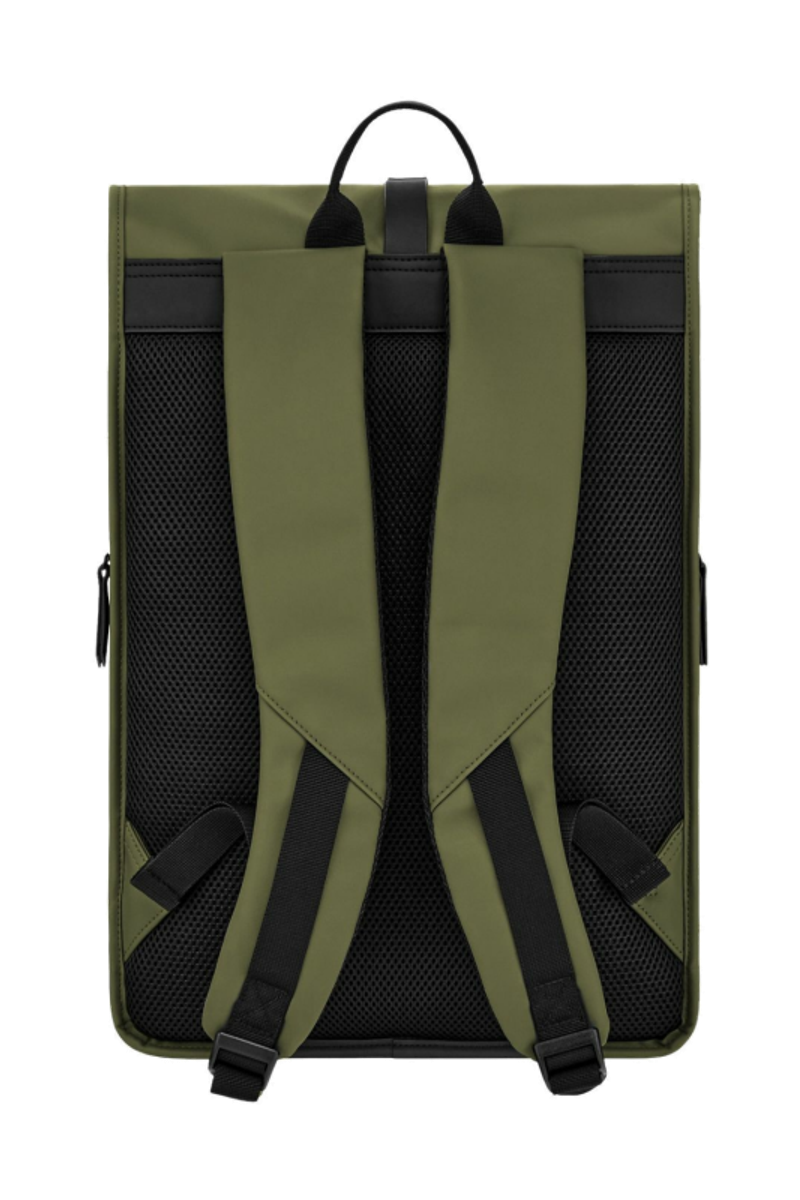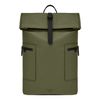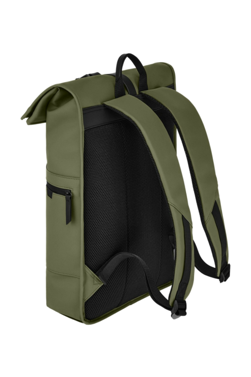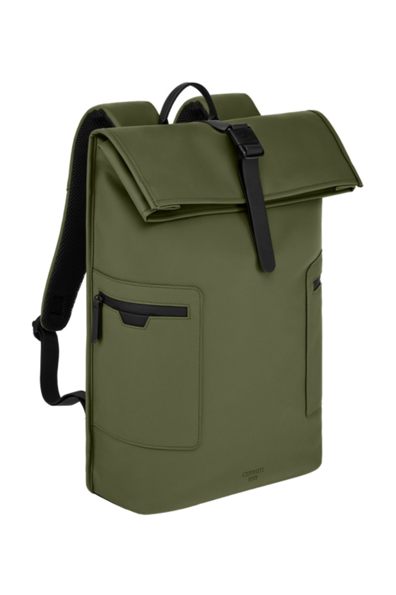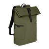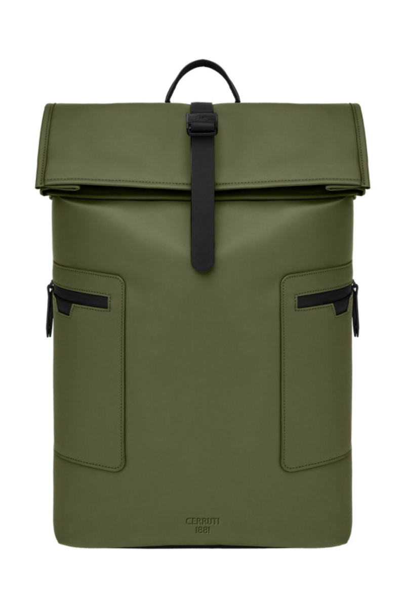 Designed with form as much as function in mind, this casual-inspired rolled-top backpack is offered in a refined khaki green, contrasted with elegant black matte details. A subtle utilitarian aesthetic is expressed through its rolled-top closing construction, perfectly finished with an integrated magnetic closure engraved with the RR signature. The silhouette is light and roamy, ideal for daily movement. Two flat zipped pockets to the front provide practical organization, while the interior features a dedicated laptop compartment for everyday essentials. A padded back panel and padded shoulder straps ensure lasting comfort in use. Inside, a spacious roamy interior reveals a refined monogram lining, completed with a zipped inner pocket for secure storage. It is the perfect accessory for someone with a minimalist yet casual and modern aesthetic.