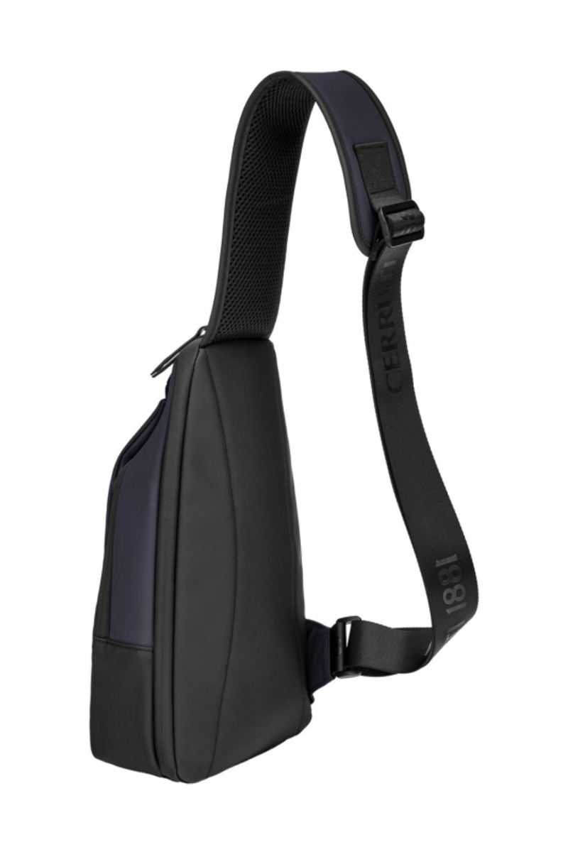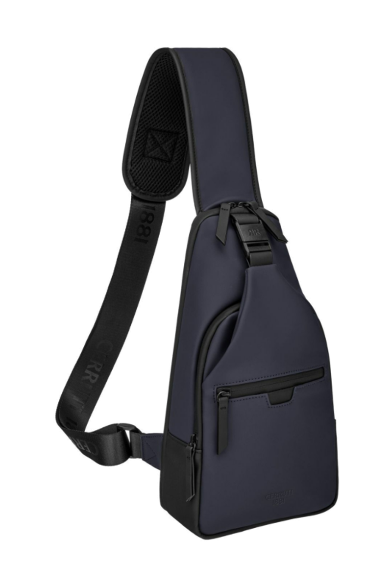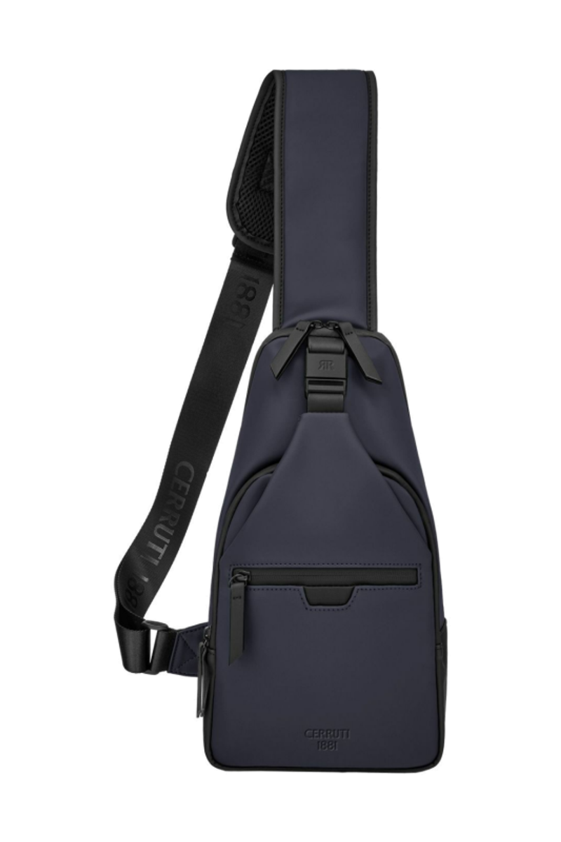 Designed with form as much as function in mind, this casual-inspired crossbody bag is rendered in a deep navy tone, elevated by all-black trims for a sharp, minimal contrast. A subtle utilitarian aesthetic is expressed through its clean structure and perfectly integrated black magnetic closure, engraved with the RR signature. The single strap is adaptable in size, allowing effortless wear as a crossbody. Its compact yet organized volume is designed for daily essentials, featuring two distinct compartments for intuitive separation. Inside, the interior is fully monogrammed, reinforcing the refined identity of the line. Light and roamy in spirit, it is the perfect accessory for someone with a minimalist yet casual and modern aesthetic.