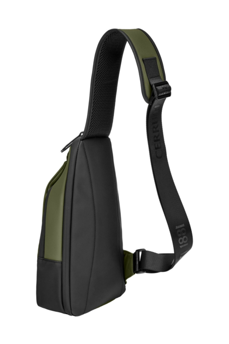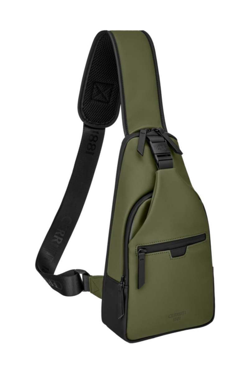 Designed with form as much as function in mind, this casual-inspired crossbody bag is offered in a refined khaki green, contrasted with all-black trims for a modern utilitarian edge. A subtle utilitarian aesthetic is expressed through its clean structure and perfectly integrated black magnetic closure, engraved with the RR signature. The single strap is adaptable in size, allowing effortless wear as a crossbody. Its compact yet organized volume is designed for daily essentials, featuring two distinct compartments for intuitive separation. Inside, the interior is fully monogrammed, reinforcing the refined identity of the line. Light and roamy in spirit, it is the perfect accessory for someone with a minimalist yet casual and modern aesthetic.