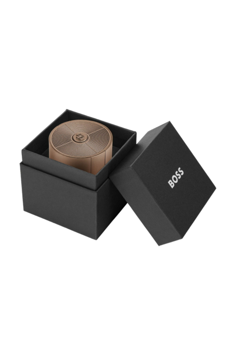Il diffusore Elemental è compatto e facilmente trasportabile e abbina raffinate finiture metallizzate a un suono chiaro e coinvolgente da 5W. Il logo della doppia B evidenzia il pulsante di controllo principale, mentre la firma BOSS completa il design in modo discreto. Con cinque ore di autonomia e una comoda ricarica USB-C, è pratico ed espressivo. Disponibile in tre versioni: nero, argento e cammello metallizzato.