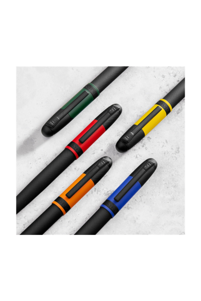 Festina's top selling Classicals pen is re-invented with a new capsule edition: an innovative finishing that brings it a contemporary & luxurious edge. The surface is engraved and plated in matt black contrasted with the rubber touch matt laquer of the cap, for a resolutely modern & graphical result. This color block version is available in yellow, orange, red, blue and green.