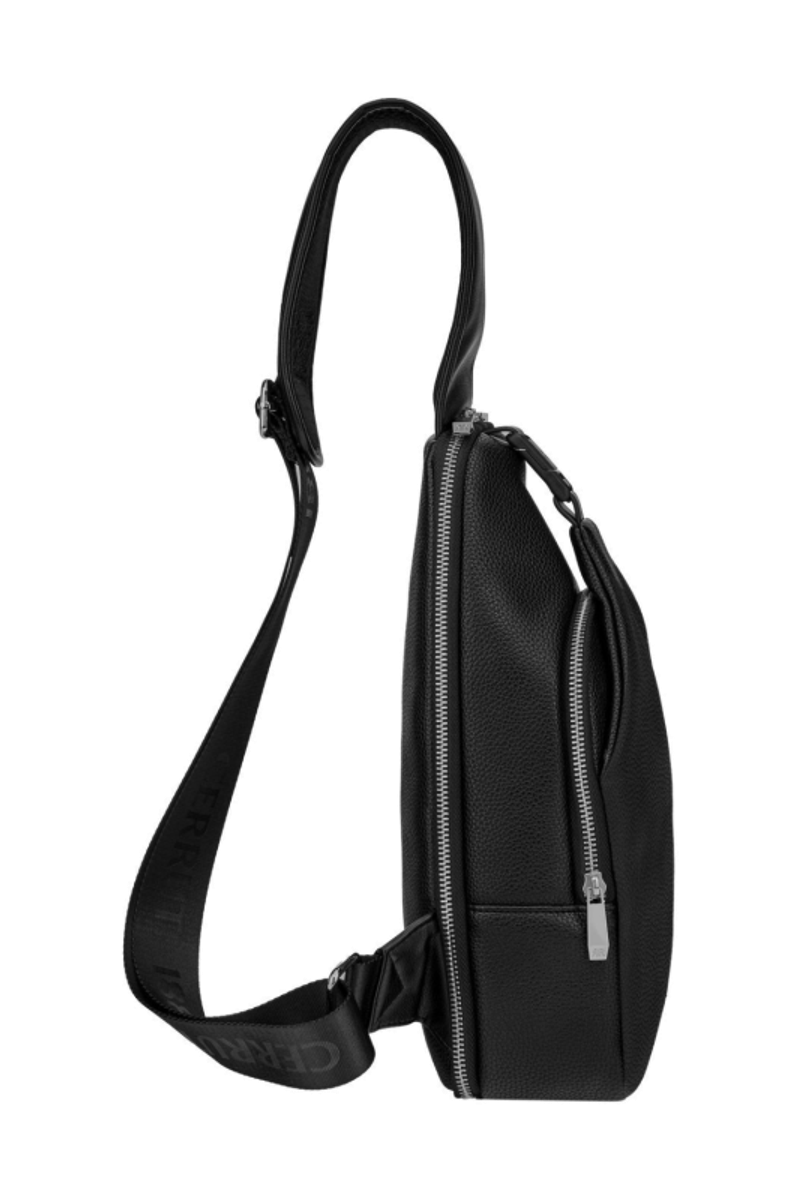 Designed with form as much as function in mind, the Jefferson bag is crafted from carefully curated grained material for a refined and elegant style. Chrome-finished metal elements bring a sharp modern contrast, featuring the new RR zippers and the Cerruti 1881 metal logo signature as a distinctive highlight. Its clean structure is completed with a perfectly integrated magnetic closure for a precise finish. The single strap is adaptable in size, allowing effortless wear as a crossbody. Its compact yet organized volume is designed for daily essentials, featuring two distinct compartments for intuitive separation. Inside, the interior is fully monogrammed, reinforcing the refined identity of the line. It is the perfect accessory for someone drawn to understated luxury.