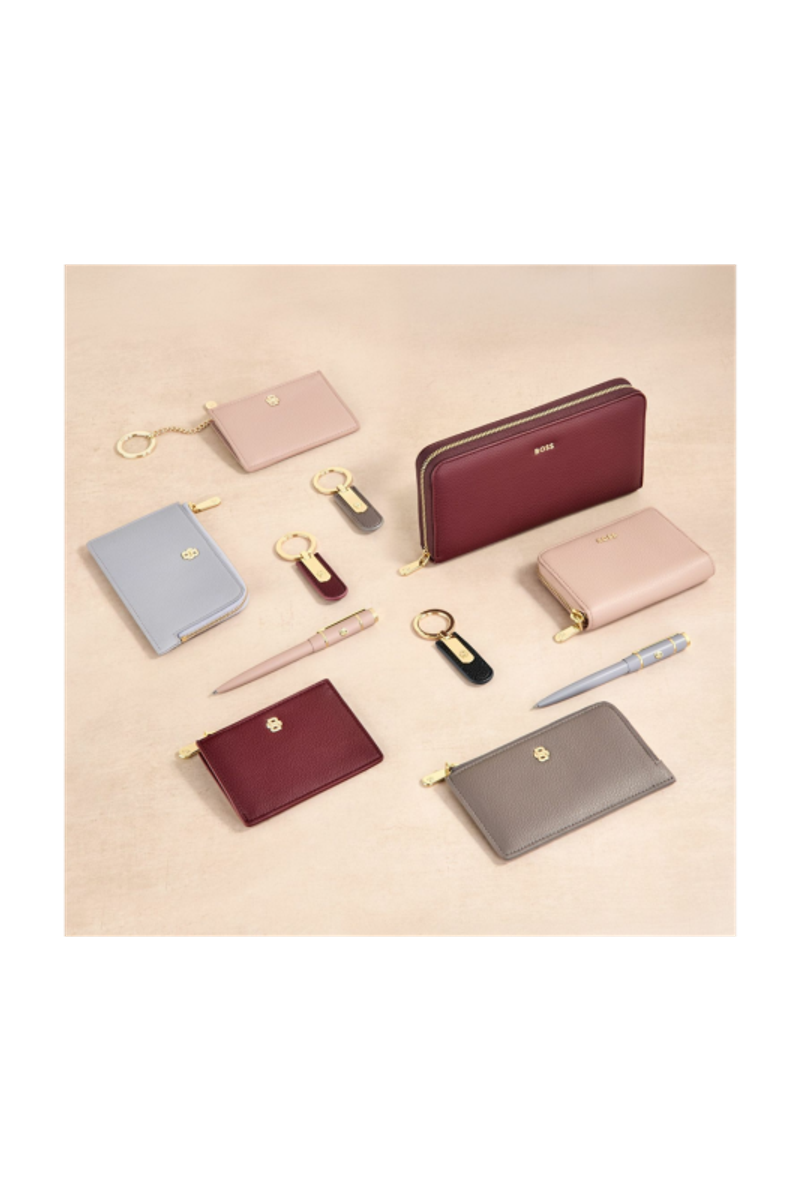 Эта компактная сумка изготовлена из зернистого матового полиуретана и украшена изысканной фирменной пластиной Double B на лицевой стороне, дополненной тисненым логотипом BOSS на задней стороне. В дизайне использованы новые молнии с легким золотым напылением, украшенные деталью Double B, что придает мягкость и деликатность, оставаясь при этом чистым и минимальным. На задней стороне расположены пять слотов для карт, а вместительное основное отделение включает дополнительный внутренний слот для организованного хранения. Модель полностью отделана светло-золотистой отделкой и представлена в мягкой и яркой цветовой палитре, включающей черный, бордовый, тауп, нюд и сиреневый.