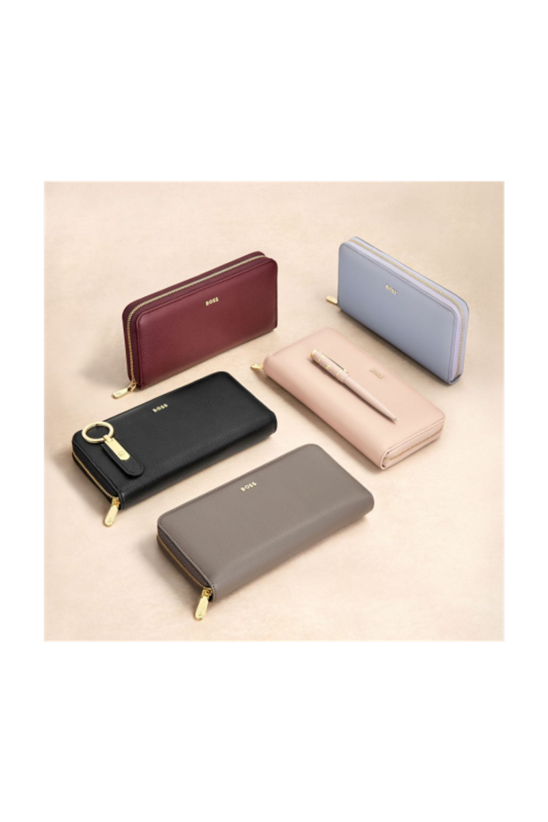 Этот классический кошелек на молнии изготовлен из тщательно отобранного зернистого матового полиуретана с мягкой, изысканной фактурой. Дизайн подчеркнут фирменной пластиной с логотипом BOSS на лицевой стороне и дополнен недавно разработанными позолоченными молниями с деталью Double B. Предназначенный для повседневной организации, он предлагает двенадцать слотов для карт, по шесть с каждой стороны, два отделения для купюр, расположенные по обеим сторонам, и центральное отделение на молнии для безопасного хранения. Кошелек полностью отделан светло-золотой отделкой, придающей ему роскошный вид, и доступен в мягкой цветовой палитре: черный, бордовый, тауп, нюд и сиреневый.
