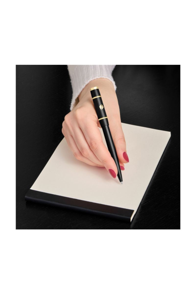 Созданная на основе силуэта Rive, эта фирменная женская ручка выражает современную, гладкую линию с изысканными пропорциями. Золотые акценты тонко освещают дизайн, придавая ему мягкую привлекательность и сохраняя чистую, современную эстетику. 3D-элемент Double B, роскошно покрытый золотом, является отличительной чертой, повторяя коды женской линии с последовательностью и элегантностью. Ручка представлена в мягкой, но яркой палитре черного, бордового, сиреневого, таупового и нюдового цветов, в ней легко сочетаются характер и деликатность. Созданная для гармоничного сочетания с одноименной линией мелкой кожгалантереи и папками, она завершает скоординированные комплекты, придавая им гармоничность и полированность.