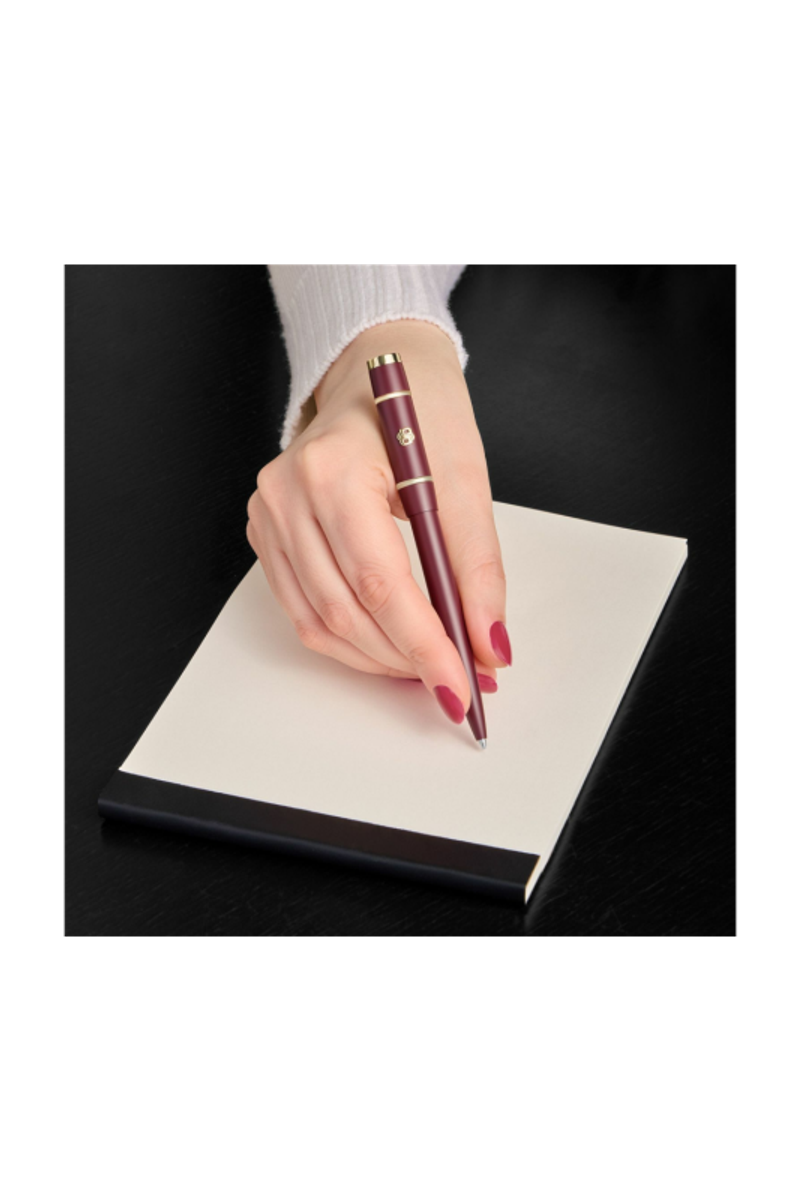 Созданная на основе силуэта Rive, эта фирменная женская ручка выражает современную, гладкую линию с изысканными пропорциями. Золотые акценты тонко освещают дизайн, придавая ему мягкую привлекательность и сохраняя при этом чистую современную эстетику. 3D-элемент Double B, роскошно покрытый золотом, является отличительной чертой, повторяя коды линии Lady с последовательностью и элегантностью. Ручка представлена в мягкой, но яркой палитре черного, бордового, сиреневого, таупового и нюдового цветов, в ней легко сочетаются характер и деликатность. Созданная для гармоничного сочетания с одноименной линией мелкой кожгалантереи и папками, она завершает скоординированные комплекты, придавая им гармоничность и полированность.