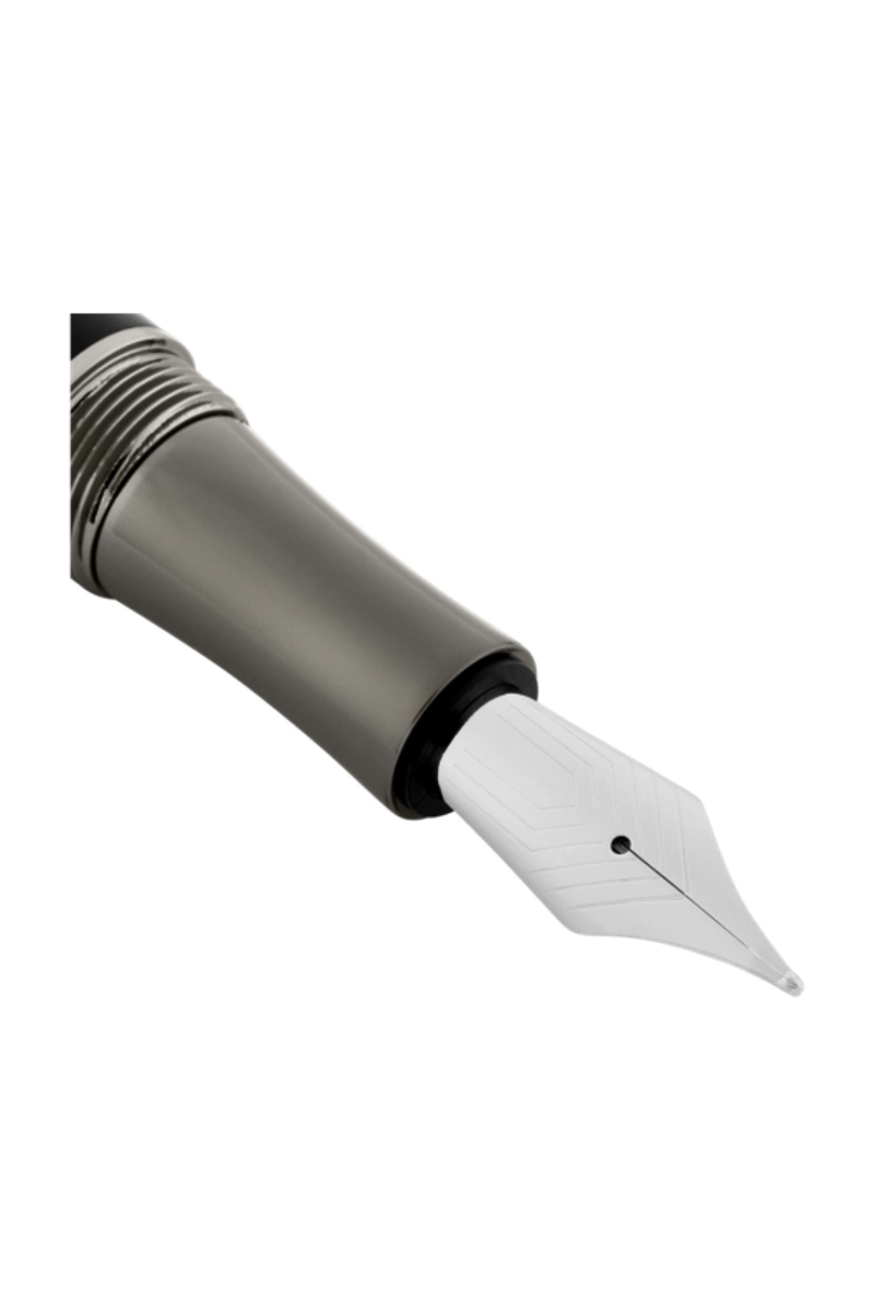 Линия ручек Striato - это графическая игра с полосками, определяющая коллекцию, представленная в самом роскошном ее проявлении. Скульптурный силуэт ручки увенчан огромным колпачком с узором из постепенно сужающихся полосок, создающих ощущение движения и визуальной точности. В результате получился решительно роскошный пишущий инструмент с характерным графическим рисунком, где изысканный узор сочетается с неподвластной времени элегантностью. Эта перьевая ручка черного цвета с металлическими деталями - настоящее воплощение современной роскоши, оснащенная крупным фирменным пером HUGO BOSS.