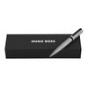 Ручка Arche Pattern представляет собой современный конический силуэт, дополненный инновационной матовой алюминиевой поверхностью, на которой выгравирован узор, вдохновленный сеткой для активной одежды. Ручка, созданная для того, чтобы подчеркнуть современный и инновационный стиль, имеет черную отделку и подпись Double B в верхней части, а клип украшен логотипом HUGO BOSS. Контраст между хромированными и черными деталями создает неожиданный графический образ, который кажется молодым и решительно минимальным.