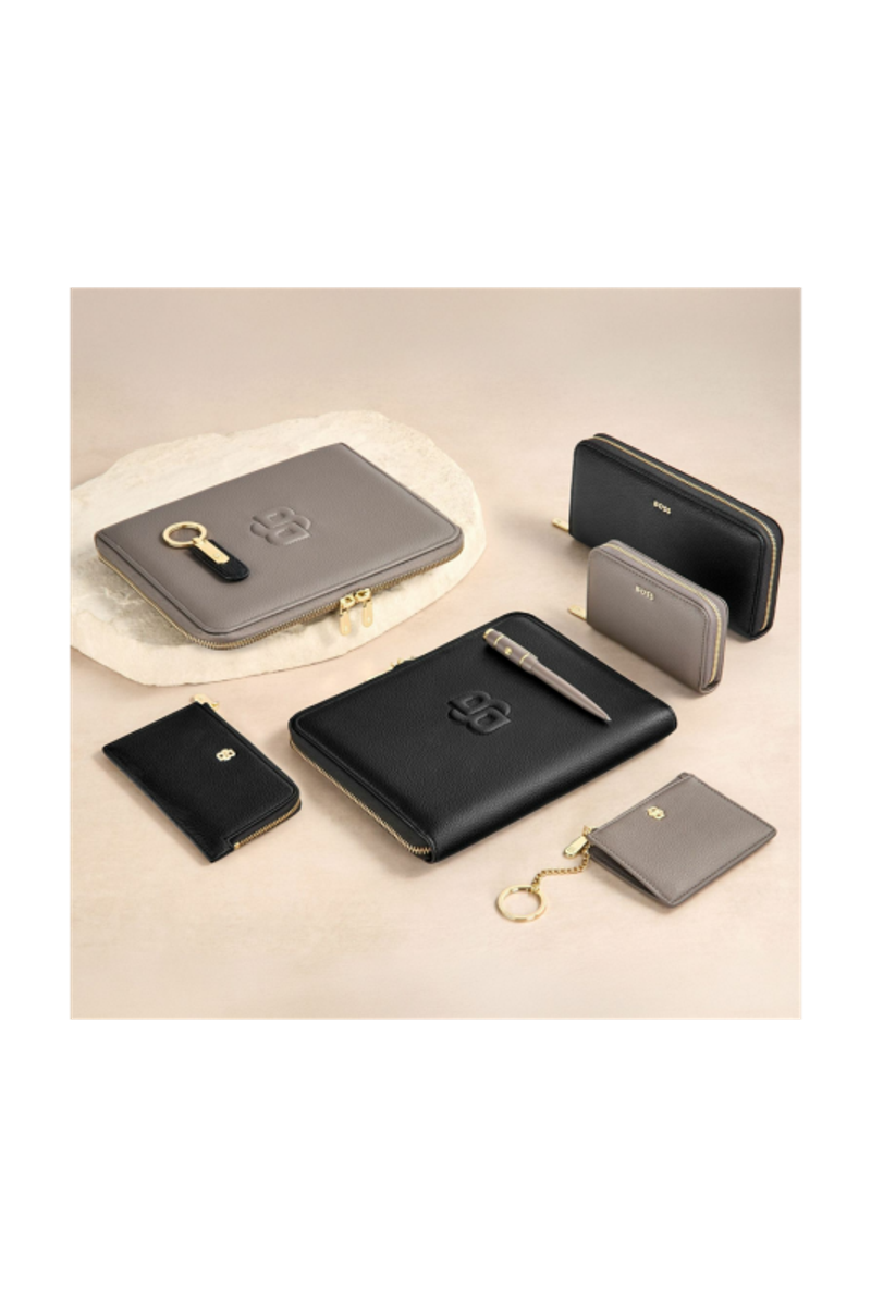 Эта фирменная женская папка черного цвета отличается большим, но минимальным трехмерным логотипом Double B, расположенным в центре. Рельефный элемент логотипа придает изысканность и роскошь, сохраняя при этом чистый и уверенный силуэт. Изготовленный из тщательно отобранного зернистого матового полиуретана, этот материал придает глубину и элегантность. Мягкие золотые акценты перекликаются с остальными элементами линии, в том числе с недавно разработанными застежками-молниями Double B, которые придают изысканный, ювелирный вид. Контраст между глубоким черным и теплым золотым создает неподвластное времени и утонченное выражение.