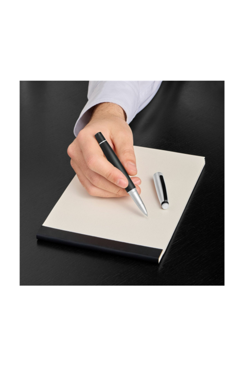 Ручка-роллер Benson выполнена в изысканном двухцветном дизайне, сочетающем матовый хромированный колпачок с роскошной гравировкой нового логотипа Cerruti и черную матовую отделку, повторяющую полоску пинстрайпа на нижнем стержне. Ручка, украшенная новым логотипом RR на верхней части, обеспечивает плавное и точное письмо, овеянное сдержанной элегантностью.