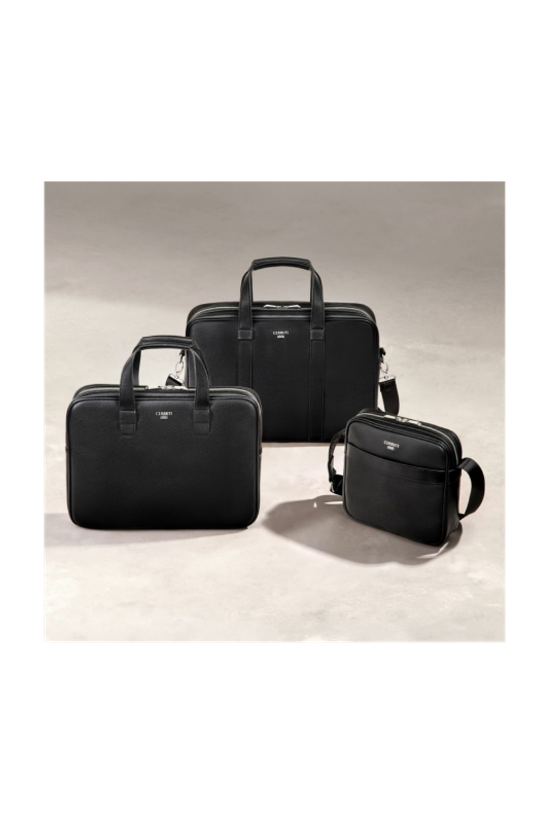 Сумка-портфель Jefferson в черном цвете с хромированной отделкой - это классическая и элегантная интерпретация повседневной функциональности. Компактная, минималистичная и вальяжная, она обеспечивает идеальную организацию благодаря подкладке с монограммой, внутреннему карману на молнии и практичному плоскому карману спереди. Созданная из тщательно подобранной матовой зернистой фактуры, она сочетает в себе простоту и роскошь, подчеркнутые хромированными металлическими акцентами и новой табличкой Cerruti 1881 с обновленным логотипом. Адаптируемый ремешок из тесьмы с логотипом тон-в-тон завершает этот великолепно выполненный аксессуар, не подвластный времени.