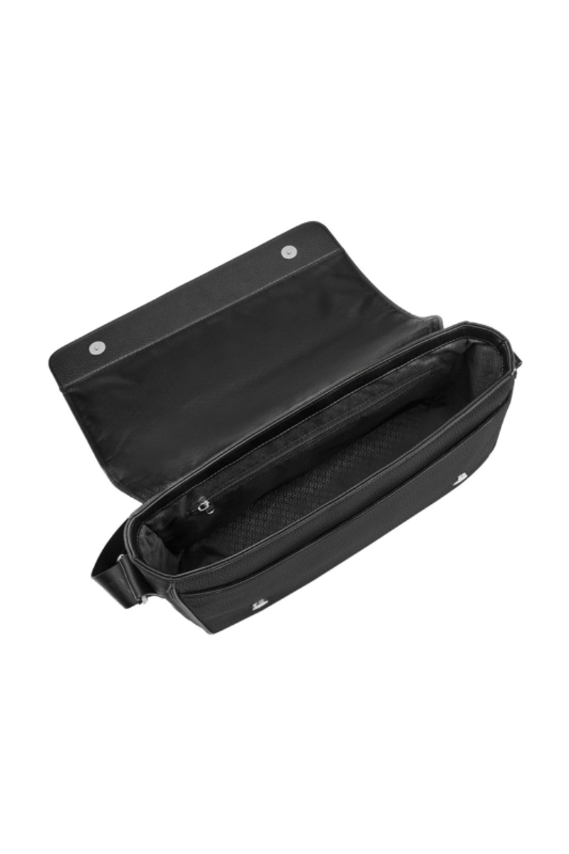 Сумка для документов Jefferson кросс-боди черного цвета с хромированной отделкой предлагает классический и элегантный подход к повседневной функциональности. Компактная, минималистичная и вальяжная, она обеспечивает идеальную организацию благодаря продуманной внутренней отделке с монограммной подкладкой, внутренним карманом на молнии и удобным плоским карманом спереди. Созданная из тщательно подобранной матовой зернистой текстуры, она отличается изысканностью, которую подчеркивают роскошные хромированные акценты, включая новую табличку Cerruti 1881 с обновленным логотипом. Адаптируемый ремешок из тесьмы с логотипом тон-в-тон завершает этот великолепно выполненный аксессуар, не подвластный времени.
