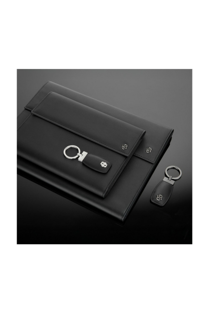 Crafted from carefully chosen smooth black genuine leather, this BOSS double B leather keyring is a classical and luxurious accessory. The keyring features a mini version of the iconic double B plate, signed with the BOSS logo embossed on the back and the BOSS logo engraved on the ring. The shiny gunmetal trims complement the sleek leather, making it a versatile accessory that pairs effortlessly across the collection.
