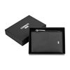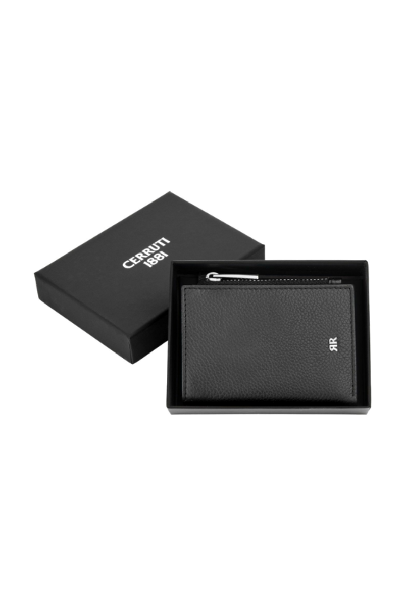 The CERRUTI 1881 Jefferson zipped card holder is compact and highly functional, offering six card slots, two vertical compartments, a main note compartment, and a zipped pocket—all efficiently arranged within a remarkably slim silhouette. Crafted from carefully chosen grained, best-quality leather, it is designed for everyday practicality without sacrificing refinement. Its metal accents bring the essential twist: the 1881 zipper puller adds a luxurious finishing touch, while the miniature double signature in crisp chrome enhances the classical black leather with a sharp, elegant contrast that remains discreet yet unmistakably sophisticated.