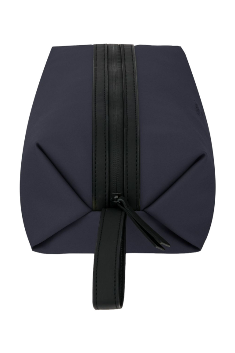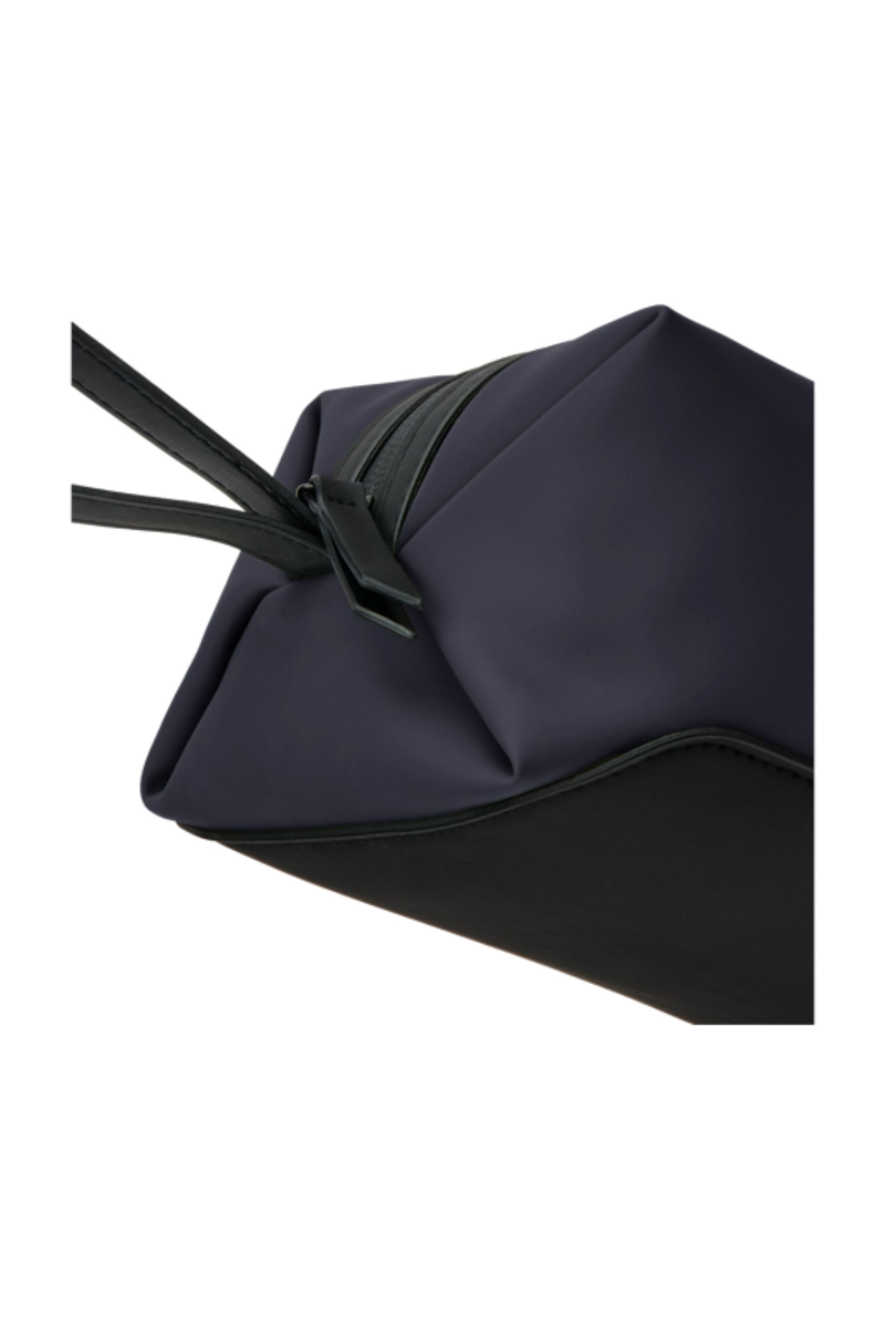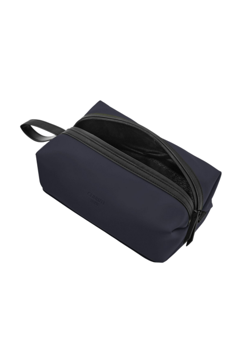 Crafted with a very modern shape that has become one of Cerruti’s signature design codes, the Easton cosmetic bag in navy is elevated by refined black matte trims. Minimally signed with an embossed Cerruti 1881 logo, it embodies a clean and contemporary attitude. The interior is discreetly monogramed, offering a subtle nod to the house’s identity. A practical wristlet adds ease of use, making it an ideal piece for movement. The ultimate minimalistic and practical travel companion to organise all essentials.