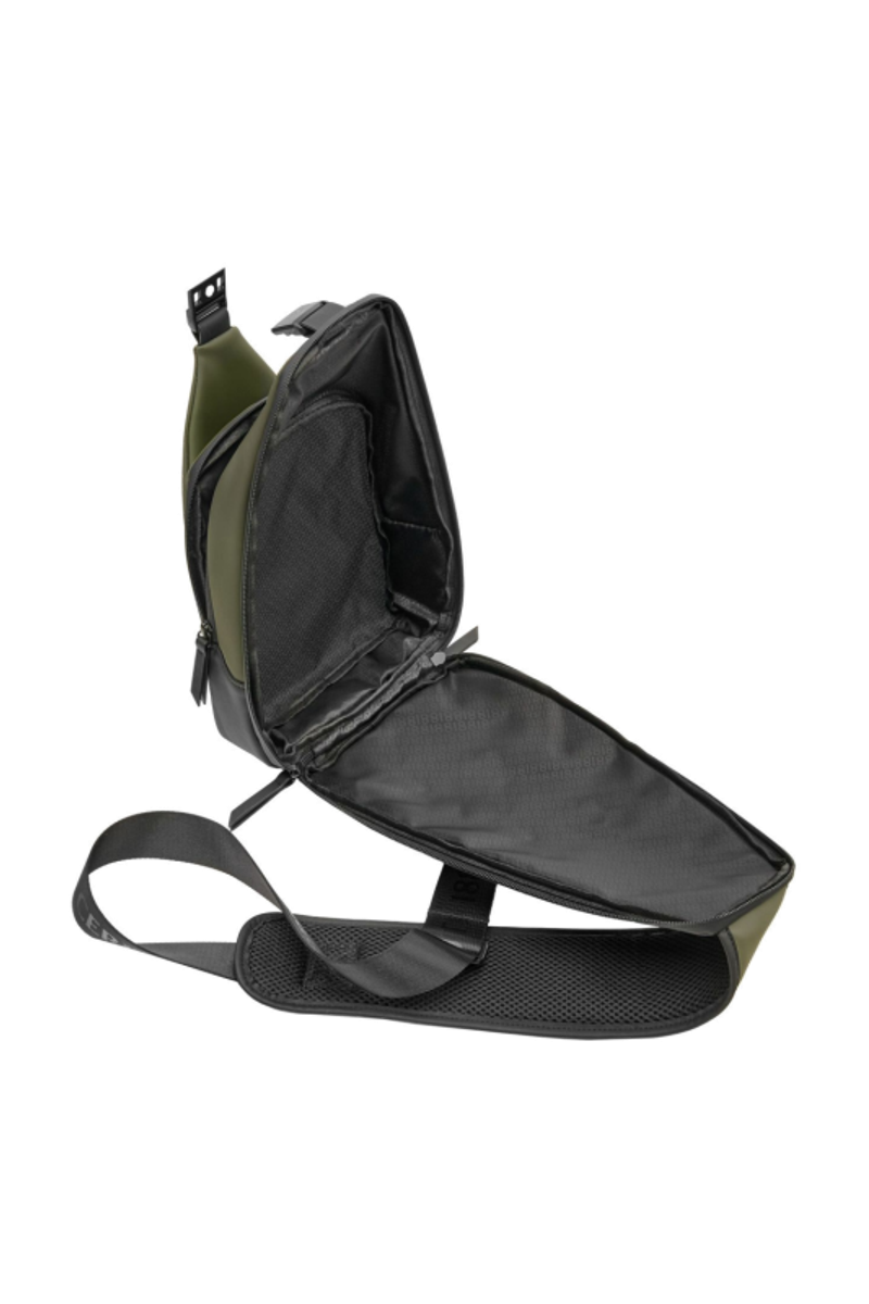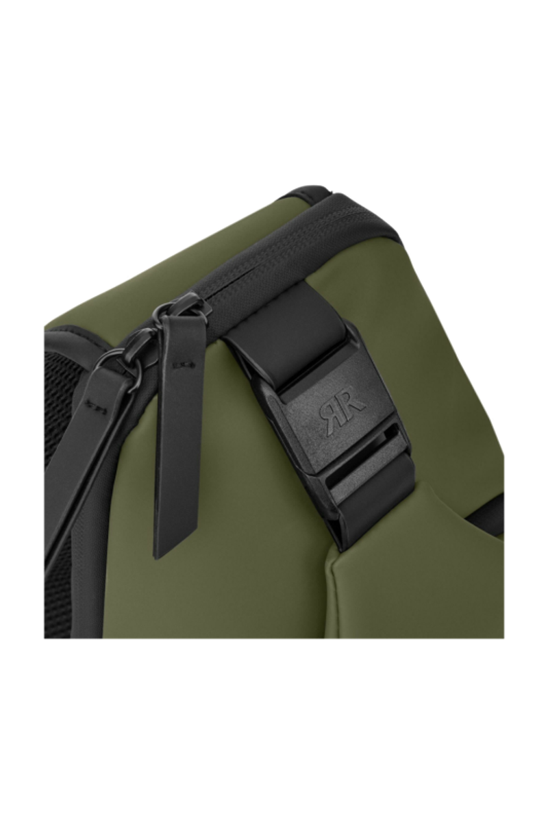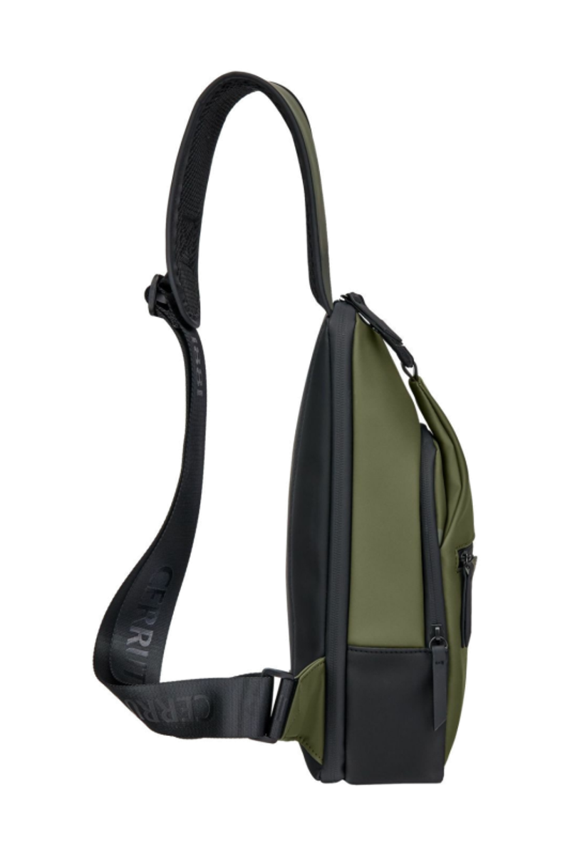 Designed with form as much as function in mind, this casual-inspired crossbody bag is offered in a refined khaki green, contrasted with all-black trims for a modern utilitarian edge. A subtle utilitarian aesthetic is expressed through its clean structure and perfectly integrated black magnetic closure, engraved with the RR signature. The single strap is adaptable in size, allowing effortless wear as a crossbody. Its compact yet organized volume is designed for daily essentials, featuring two distinct compartments for intuitive separation. Inside, the interior is fully monogrammed, reinforcing the refined identity of the line. Light and roamy in spirit, it is the perfect accessory for someone with a minimalist yet casual and modern aesthetic.