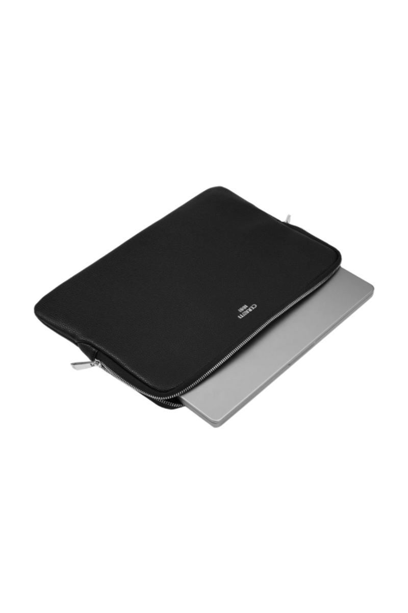 The Jefferson computer pouch in black with chrome trims offers a classical and elegant take on everyday functionality. Compact yet protective, it safeguards a laptop while maintaining a refined, minimal silhouette crafted from a carefully chosen matte-grained texture. Luxurious metal accents elevate the piece, with the new Cerruti 1881 plate celebrating the updated logo and angular signature zipper pullers engraved with RR adding the perfect finishing touch. The monogramed lining enhances the sense of quiet luxury, resulting in a beautifully crafted, timeless accessory.