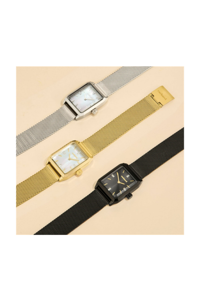 La montre Philomène en argent présente un bracelet en maille milanaise raffiné associé à un boîtier en argent brillant, créant une silhouette élégante et intemporelle. Son cadran de nacre est entièrement détaillé en argent, avec une pierre unique qui apporte une subtile touche de lumière. Avec son boîtier angulaire aux proportions parfaites, elle offre un style élégant et durable.
