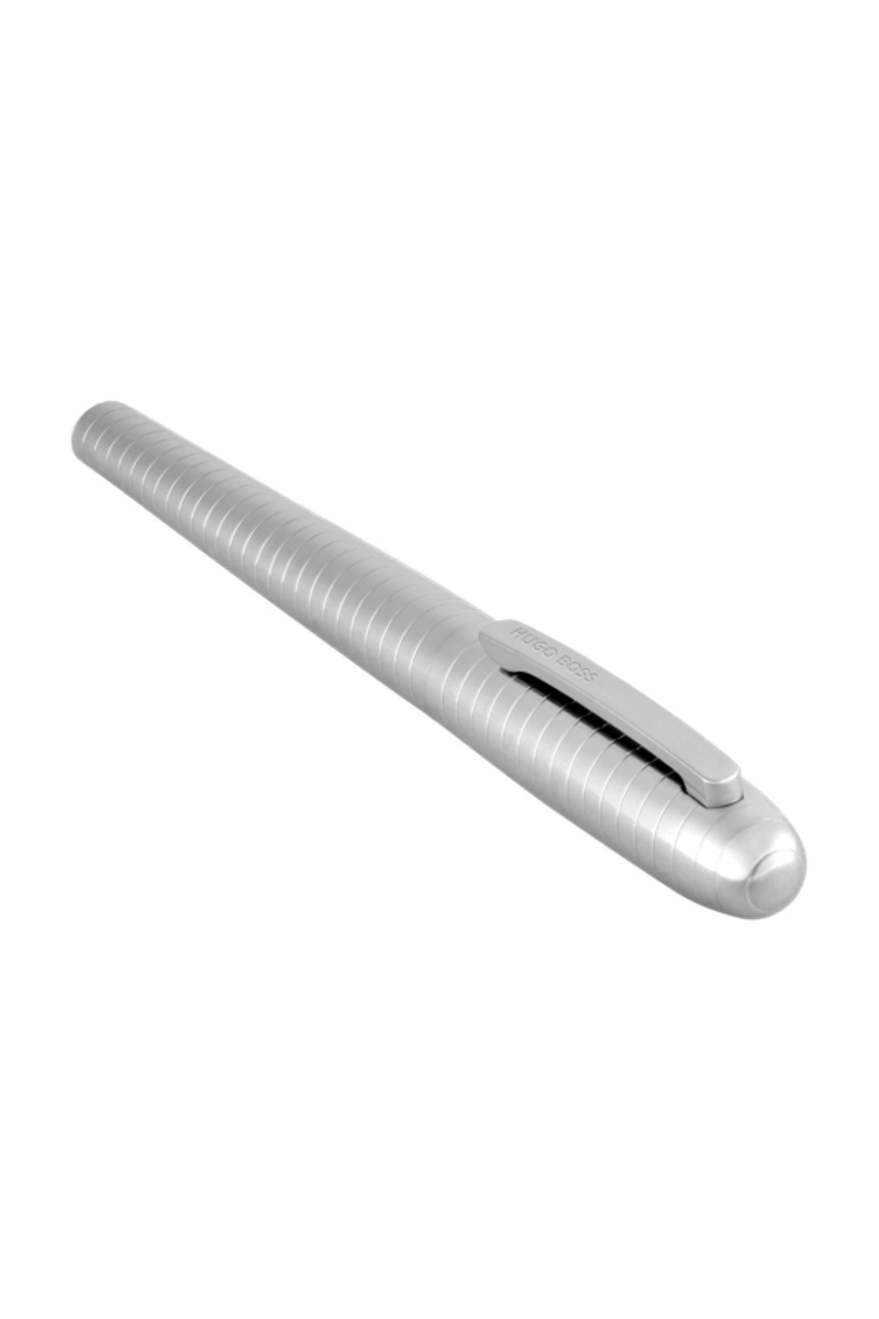 The Contour Bauhaus pen builds on the rounded, ogivoidal silhouette that has become a market favorite, with every line curved to create a fluid, seamless profile. Spaced horizontal lines bring an architectural, futuristic vibe, making the cap and barrel read as one continuous form. Plated in shiny finishes and signed with a HUGO BOSS logo on the clip, it comes in crisp chrome or deep, shiny black