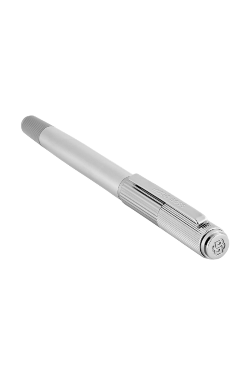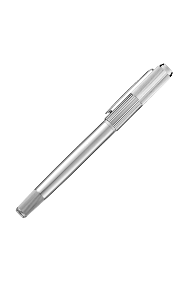 The Striade fountain pen brings a refined twist to a classical silhouette, exploring the interplay of two pinstripe scales arranged across its cap. This contrast lends a subtle industrial spirit to the design, adding texture and character while preserving a minimal, balanced presence as a writing tool. Executed in crisp chrome with contrasting shiny and matte textures, it feels thoughtfully engineered, with a considered graphical detail that elevates its timeless form.