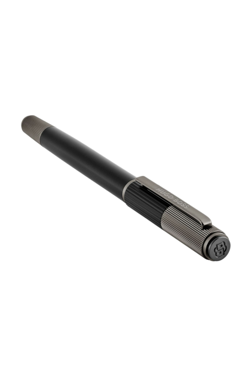 The Striade rollerball pen brings a refined twist to a classical silhouette, exploring the interplay of two pinstripe scales arranged across its cap. This contrast lends a subtle industrial spirit to the design, adding texture and character while preserving a minimal, balanced presence as a writing tool. Rendered in matte black with engraved gunmetal textures, it feels thoughtfully engineered, with a considered graphical detail that elevates its timeless form.
