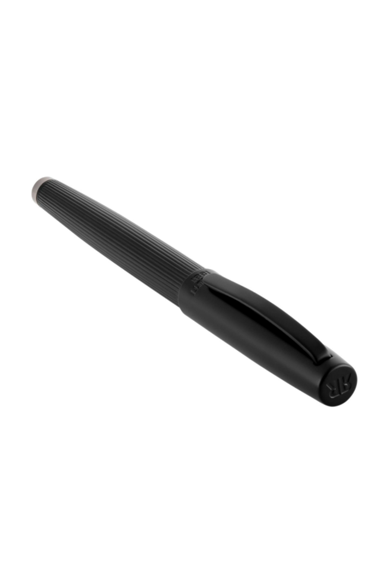 The Cerruti 1881 matte black fountain pen embodies modern luxurious minimalism with a smooth cap engraved with the new two-row Cerruti 1881 logo and a pinstripe-engraved lower barrel. Finished in matte black, it delivers a bold, understated interpretation of classical writing.