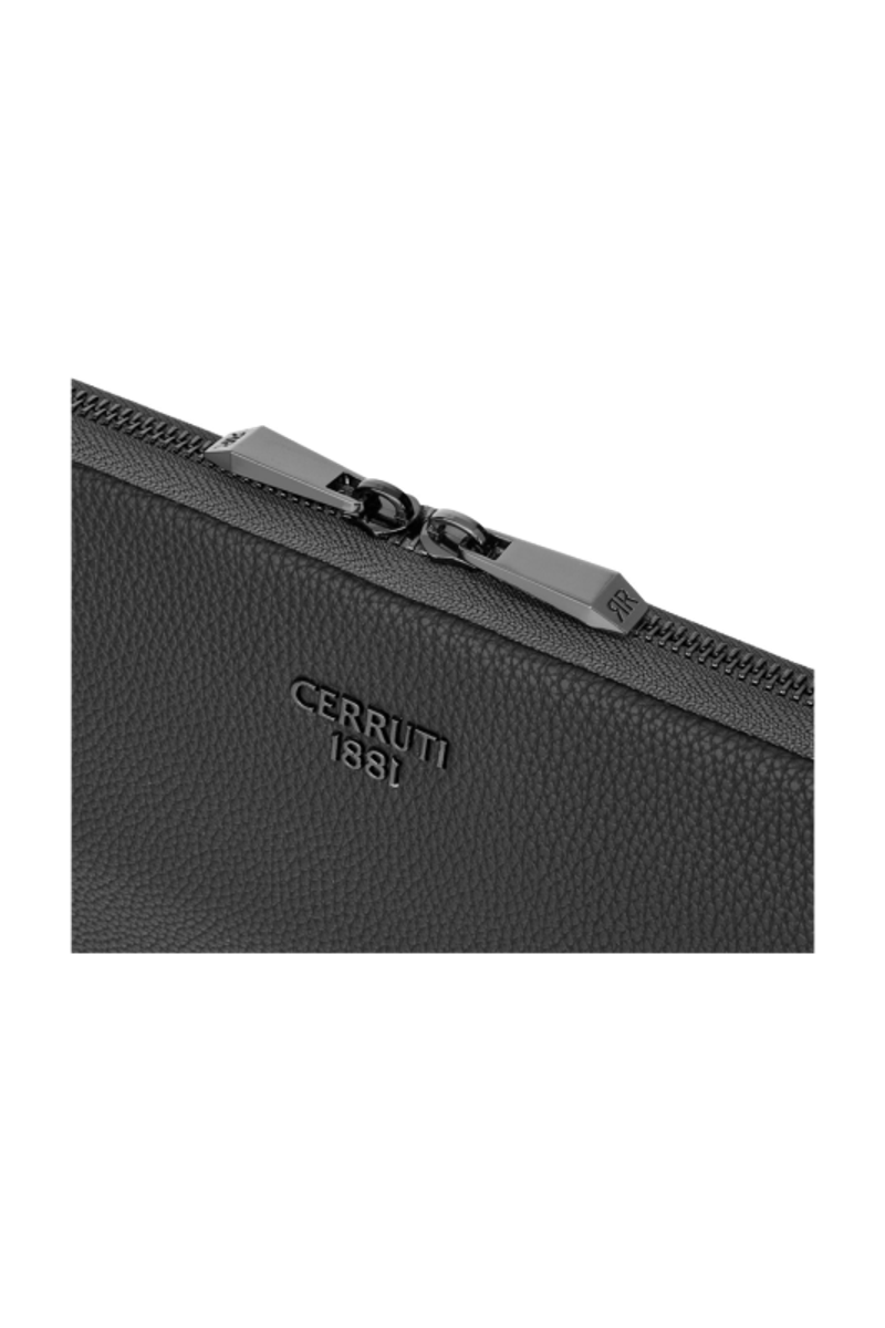 The Jefferson computer pouch in dark grey with gunmetal trims reflects understated elegance and pure minimalism. Designed to offer compact practicality and excellent laptop protection, it is shaped from a matte-grained texture chosen for its refined tactility. Gunmetal accents, including the new Cerruti 1881 plate and the angular RR-engraved signature zipper pullers, subtly enrich the clean design without compromising its simplicity. Completed with a monogramed lining, this is a timeless everyday accessory marked by precision and craftsmanship.