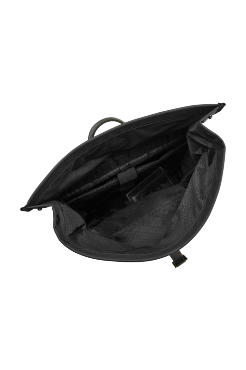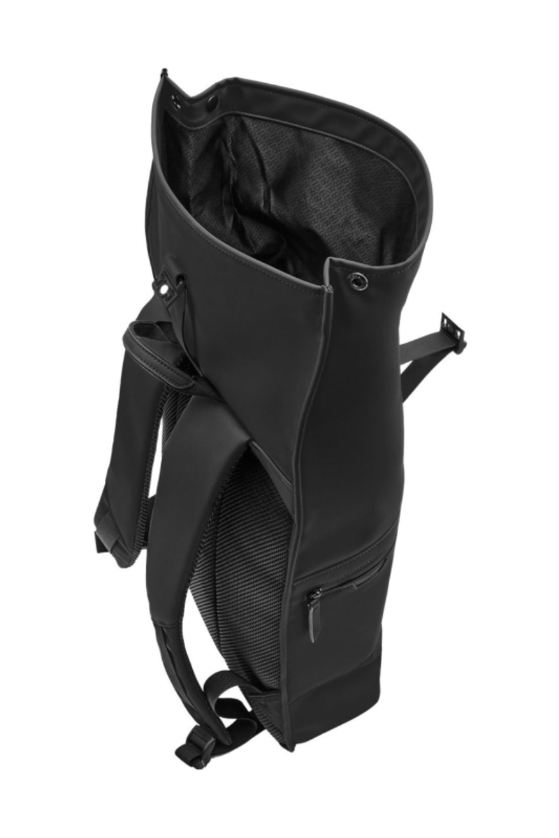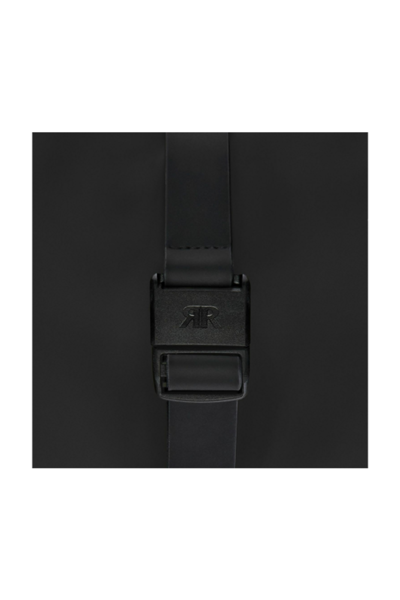 Designed with form as much as function in mind, this casual-inspired rolled-top backpack is expressed in timeless black, paired with elegant black matte details for a clean, minimal attitude. A subtle utilitarian aesthetic is expressed through its rolled-top closing construction, perfectly finished with an integrated magnetic closure engraved with the RR signature. The silhouette is light and roamy, ideal for daily movement. Two flat zipped pockets to the front provide practical organization, while the interior features a dedicated laptop compartment for everyday essentials. A padded back panel and padded shoulder straps ensure lasting comfort in use. Inside, a spacious roamy interior reveals a refined monogram lining, completed with a zipped inner pocket for secure storage. It is the perfect accessory for someone with a minimalist yet casual and modern aesthetic.